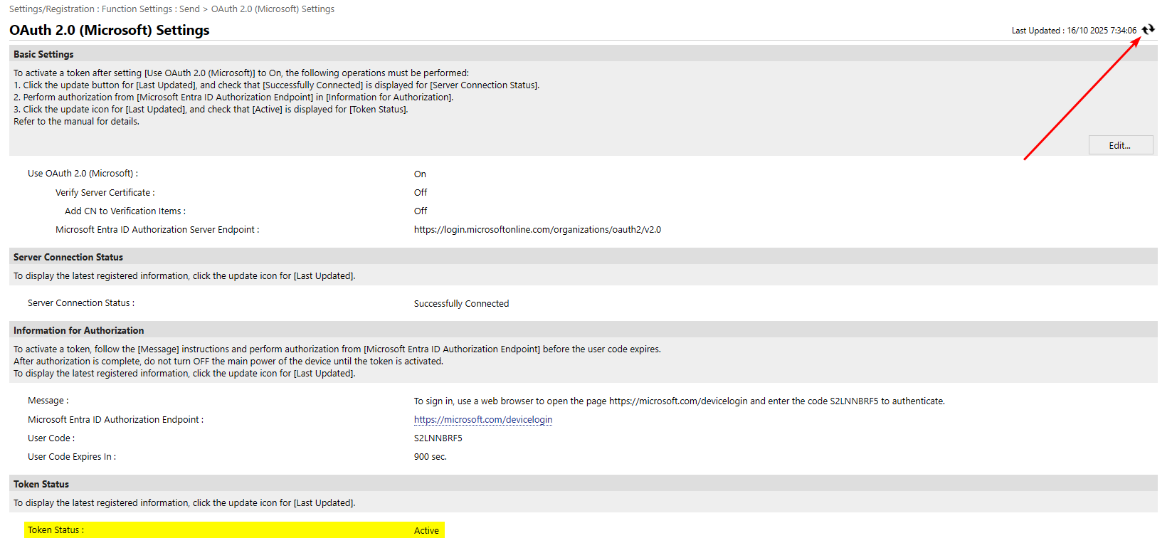 If this was successful, you should be able to refresh the page and now see the Token Status change to Active.